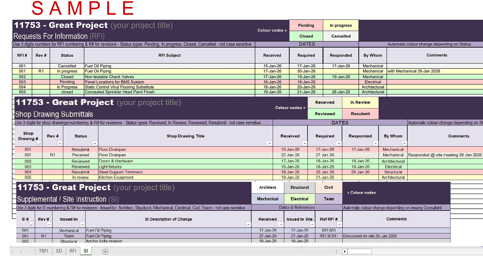 We all know the importance of maintaining up to date log files. The project log files are used by the software. It makes contract admin work well organized and easier, reduces stress and eliminates unwanted delays. Never fall behind, elevate the image of your company and the trust the Clients place in you.