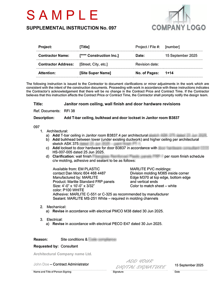 Architects & Contractors reduce staffing costs, increase efficiency and client satisfaction with our On-demand Contract Administration Service. Instead of maintaining a full time employee you can have a full stack contract administration service when you need it covering the entire spectrum of contract administration or a selected area.